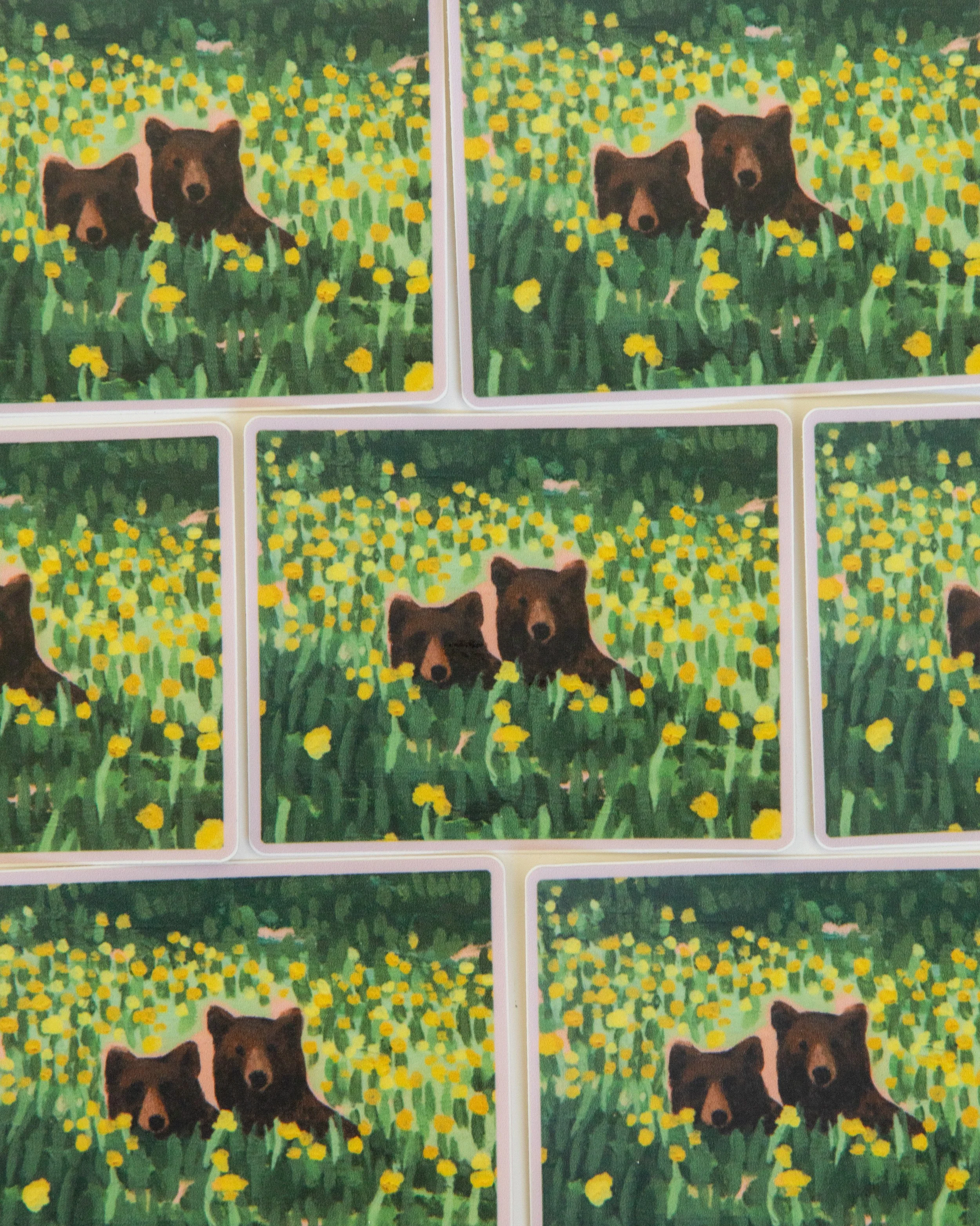 This 5×1.23inch sticker features a mama bear and two cubs in wildflowers. This sticker will make a great addition to your laptop, water bottle, sketchbook or car and is ready for your next adventure! Made from a thick, durable vinyl that is protected from scratches, water and sunlight.